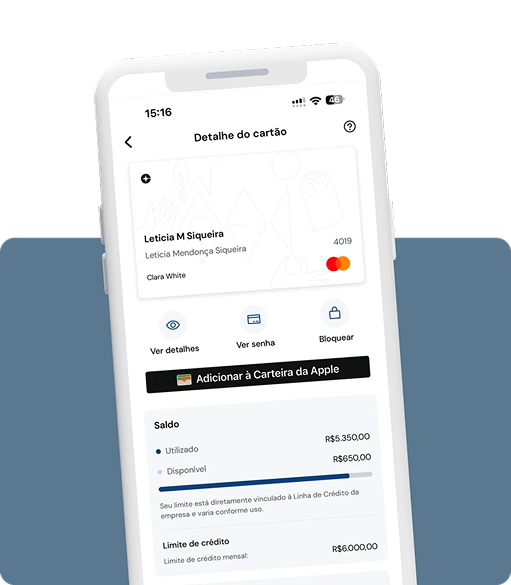 Defina limites de uso, categorias de despesas e acompanhe os gastos em tempo real para uma gestão eficiente e transparente.